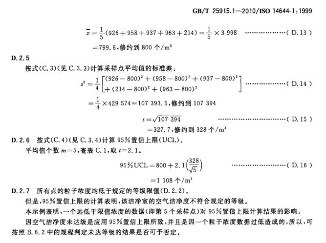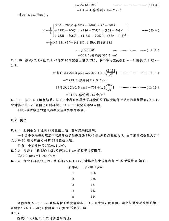 95 % 置信上限( UCL) 的计算结果,可能未达到规定的 ISO 等级 。如果未达级是测量差错(由于操 作差错或设备不正常〉所致或是粒子浓度异常低(由于个别测点空气异常洁净) 而引起的单个非随机异 常值所致,则该值可以不计 ,条件是z