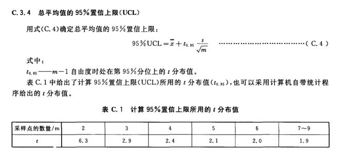 此外 ,若采样点的数量不少于 2 且不多于 9,则按 c. 3 规定计算出的 95 % 置信上限,不得超过上面