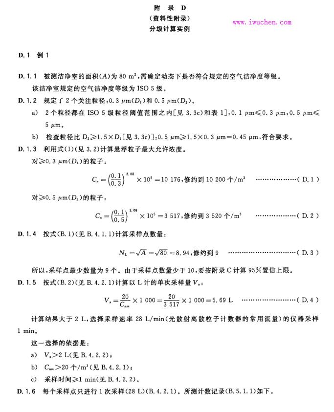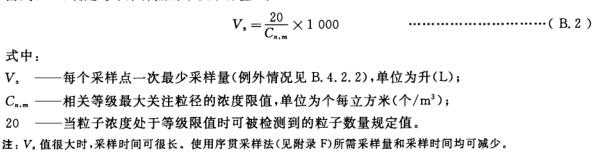若关注粒径的最大粒子浓度处于指定 ISO 等级的浓度上限 ,则在每个采样点要采集足以检测出不 少于 20 颗粒子的空气量。