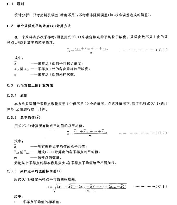 当采样点数量不只 1 个且不到 10 个时 ,按照 c. 3 中给出的规程 ,以所有各点的平均粒子浓 度